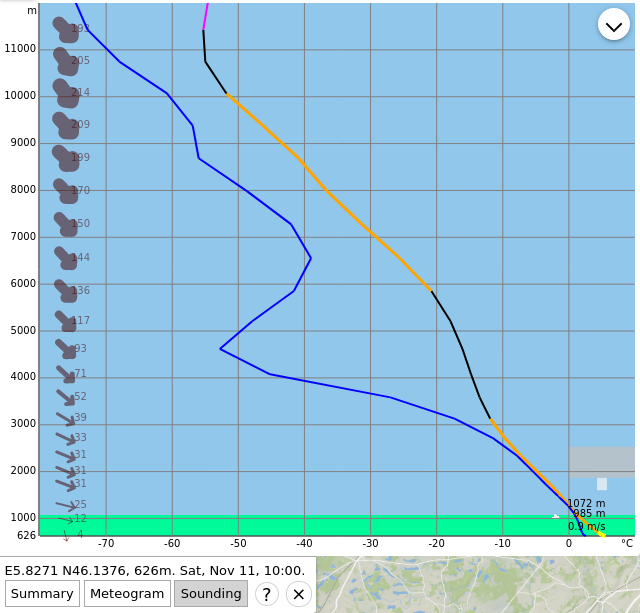 En cliquant sur un point de la carte dans soarV2 une boîte affiche quelques informations supplémentaires ainsi qu’un bouton pour afficher le météogramme pour ce point.